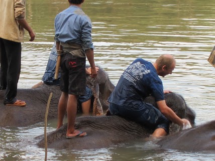 mahout. Cand am ajuns in tabara sa ii luam la baie, toti elefantii veneau langa